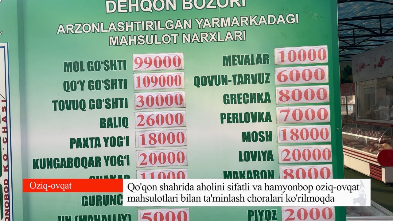 Qo‘qon shahar hokimi Markaziy dehqon bozorida aholiga taklif etilayotgan asosiy oziq-ovqat mahsulotlari narx-navolari, mahsulotlar sifati, tadbirkorlar va xaridorlar uchun yaratilgan sharoitlarni o‘rgandi. Mas’ullarga Yangi yil oziq-ovqat yarmarkasini yuqori saviyada tashkil etish, aholining bayram dasturxoniga sifatli va hamyonbop mahsulotlar yetkazib berish bo‘yicha ko‘rsatmalar berildi.